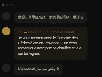 Un concierge virtuel intelligent qui qualifie chaque demande entrante en temps réel, dans la langue du voyageur. Il ne remplace pas votre équipe — il la libère pour l’essentiel.